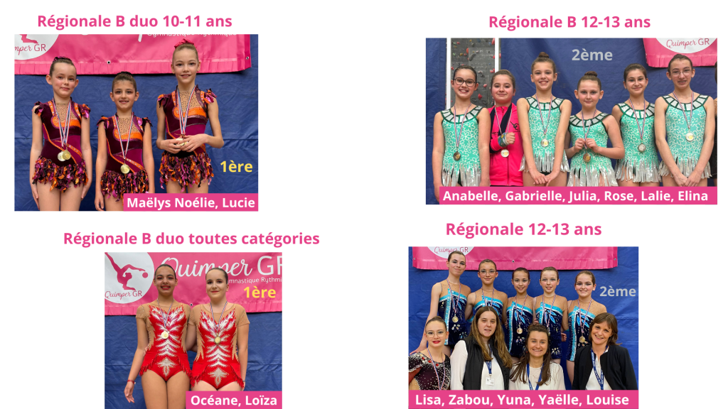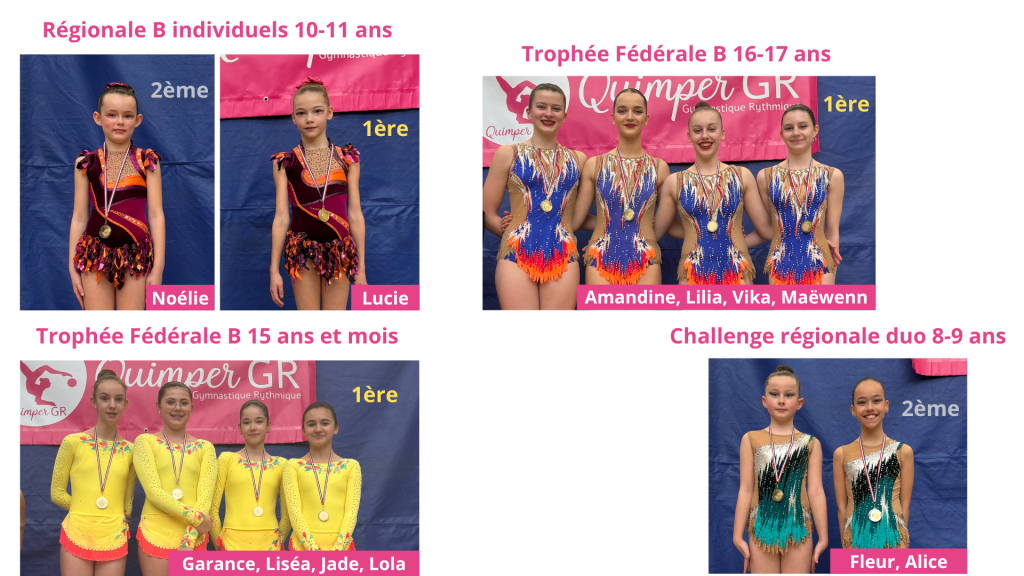 Le Quimper GR était représenté par 49 gymnastes réparties en 2 individuelles, 4 duos et 9 équipes. Belle moisson de médailles puisque le Quimper GR, présent dans 14 catégories obtient un total de 9 titres